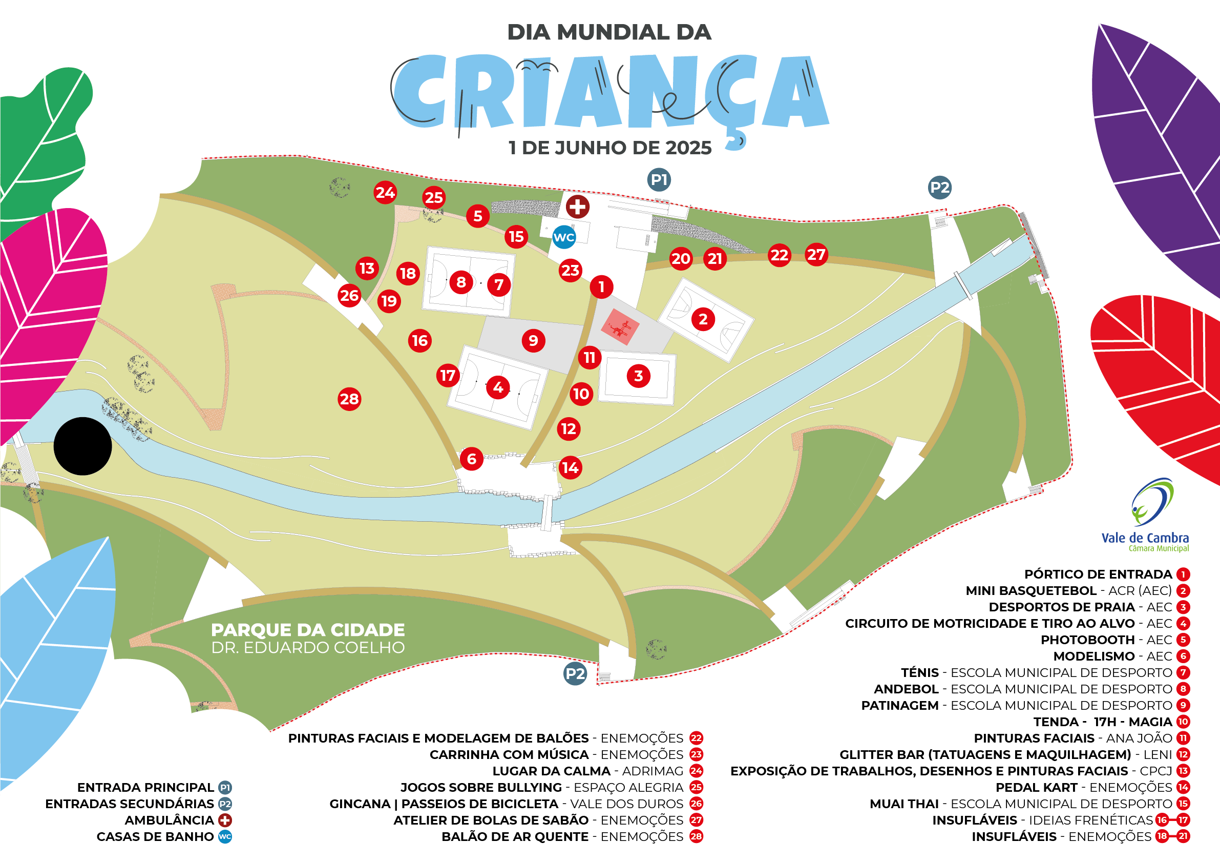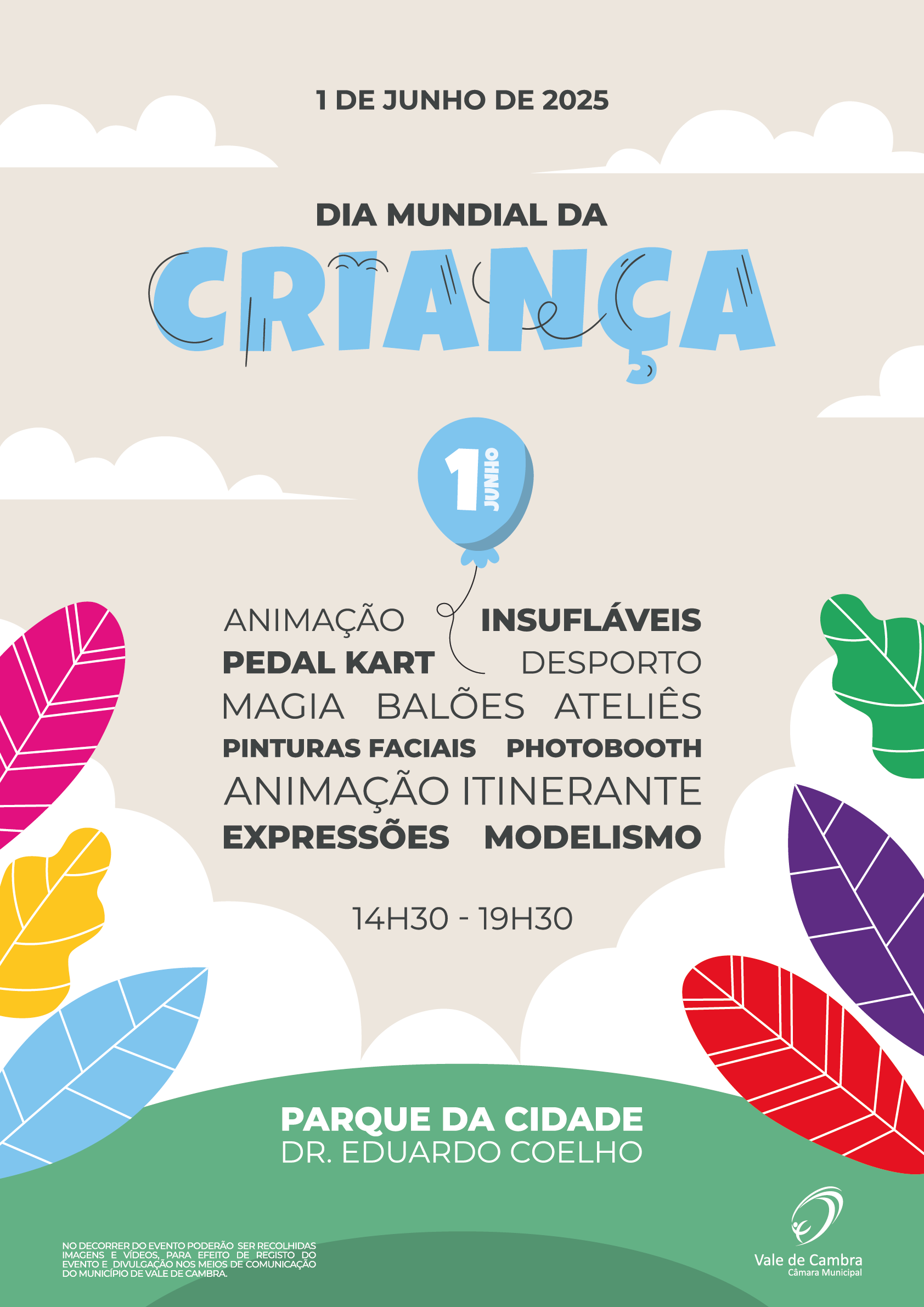 A Câmara Municipal de Vale de Cambra irá comemorar o Dia Mundial da Criança, no parque da cidade - Dr Eduardo Coelho, entre as 14h30 e as 19h30, do dia 1 de junho de 2025, estando o evento aberto à comunidade.