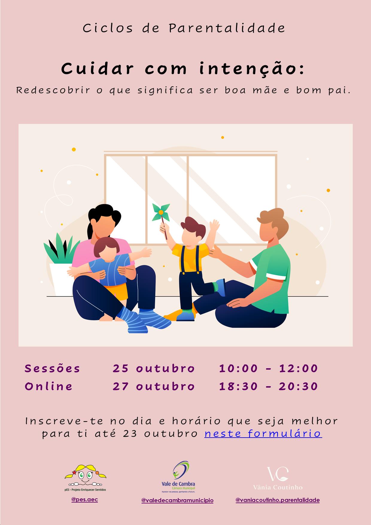 No âmbito do Programa de Parentalidade Consciente será dinamizada uma oficina online com o tema: Cuidar com intenção: redescobrir o que significa ser boa mãe e bom pai.