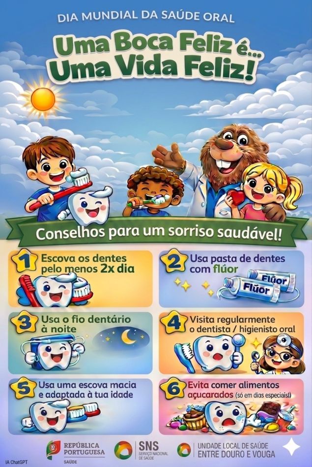 No âmbito do Dia Mundial da Saúde Oral, as equipas locais Saúde Escolar/Saúde Oral desenvolveram um cartaz com o objetivo de assinalar esta efeméride que se comemora a 20 de março de 2026.